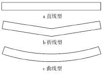 影響垂直螺旋輸送機(jī)性能的操作變量有螺旋轉(zhuǎn) 速、進(jìn)口速度、填充系數(shù)、螺旋葉片的形狀、顆粒的形狀等。試驗(yàn)選取進(jìn)口速度為 10 m/s,由文獻(xiàn)[5]可知,填充系數(shù)對平均顆粒速度、平均顆粒軸向速度、平均顆粒周向速度的影響很小,而本文中主要分析近軸處的 平均顆粒周向速度、近壁處的平均顆粒軸向速度,因 此可選填充系數(shù)取做一個固定參數(shù),即填充系數(shù)為 50%,忽略顆粒形狀對輸送性能的影響,因此試驗(yàn)選 取了螺旋轉(zhuǎn)速、螺旋葉片作為操作參數(shù),來展開詳細(xì) 的試驗(yàn)設(shè)計(jì)。 根據(jù)文獻(xiàn)[5]的分析,選取螺旋轉(zhuǎn)速參數(shù)分別為600、900、1 000、1 200、1 400、1 600、1 800 r/min;螺旋 葉片母線的形狀分別為直線型、折線型、曲線型,其形 狀簡圖如圖 2 所示,由排列組合知識可知,需要進(jìn)行21 次試驗(yàn)。